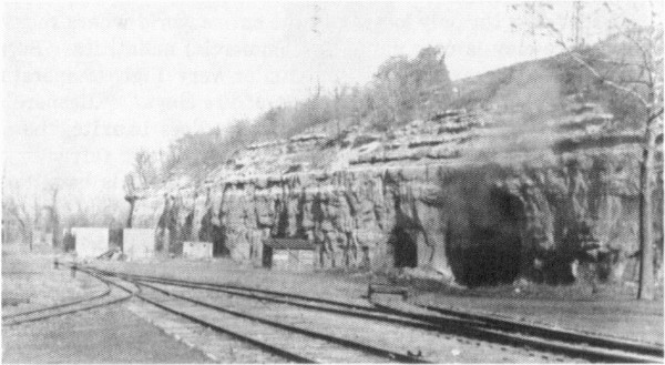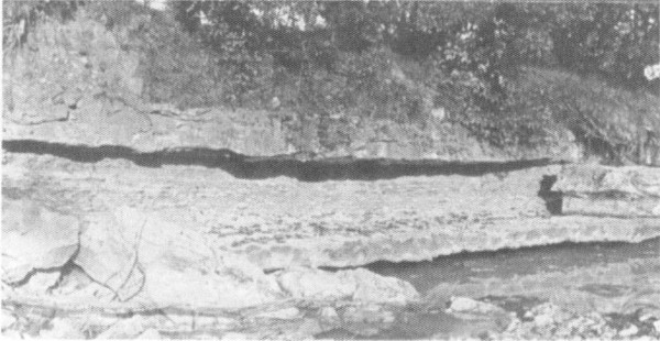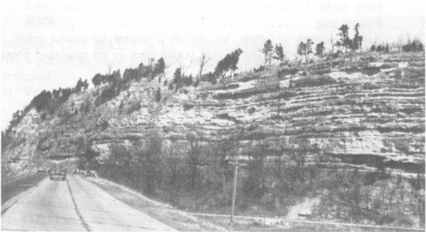 Soft, easily eroded bed of shale between two more resistant beds of limestone near Columbia.