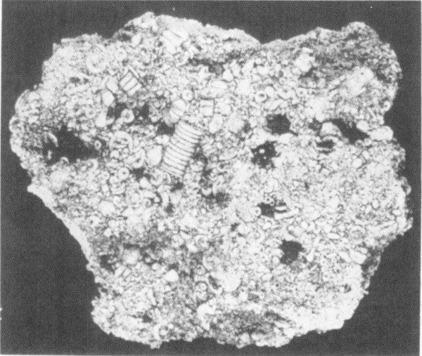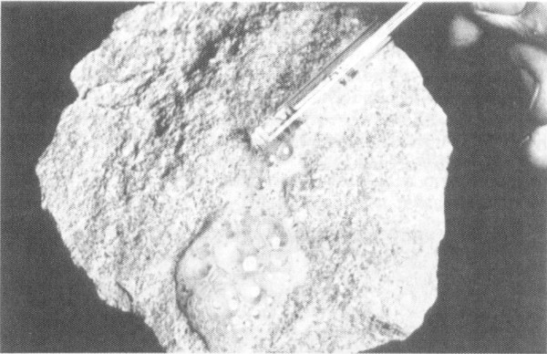A coarse-grained limestone effervescing in dilute muriatic acid. (This photograph and other close-up views taken by J. F. Barham and Allen Barnes, University photographers.)