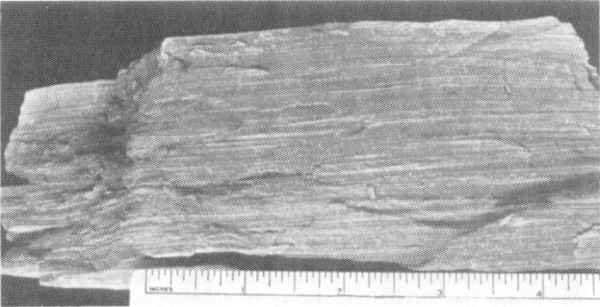 Hand specimen of shale shown in preceding picture. Note the characteristic thin layering or lamination.