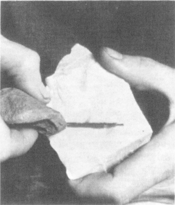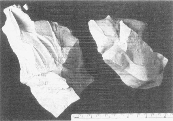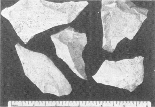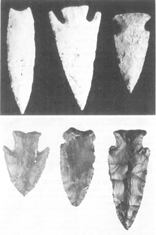 Arrow heads, scrapers, rock knives and saws which were left by the Indians who formerly lived in Missouri may be found in moderate abundance in many parts of the state. Usually these artifacts are chert in its various colors, white, gray, mottled, reddish, or black (flint). See the discussion of chert on page 34. Chert, because of its conchoidal fracture, lack of cleavage, resistance to chemical weathering, and superior hardness, is an exceptionally useful rock for making tools and weapons.