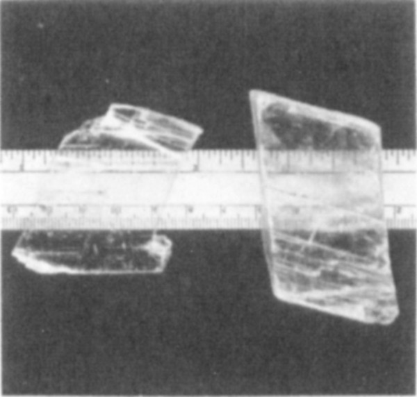 The optical property of calcite which accounts for its high value is its ability to separate, or refract, every single ray of light passing through it into two widely separated, easily distinguishable rays, hence doubling their number. This is called double refraction, and is shown by the double image of an object viewed through the calcite. Instruments which polarize light may contain calcite crystals. The artificial product, “Polaroid”, is used for a similar purpose.