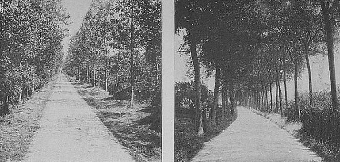 The Velperweg, the Amsterdamschestraatweg—but if this kind of thing goes on it might tangle my type into a knotted, inextricable mass; for purely mechanical reasons, therefore, I shall revert to an English version. The Velper Road, the Amsterdam Road, the Zyp Road, the Utrecht Road, and the Apeldoorn Road are the five principal arteries that tap the environs that have made Arnhem famous with the Dutchman. Each one penetrates imposing woods, the like of which the Hollander never saw before, but ruthlessly tramped almost threadbare by his frequent pilgrimages through them in search of a “panorama,” no matter how insignificant. At the different points where the foliage permits of a view of sometimes several miles across the wheat fields, fruit venders have set up their stands, the ground is littered with papers and the empty boxes discarded by many picnickers, and the importunate picture postcard man is seen in his element.