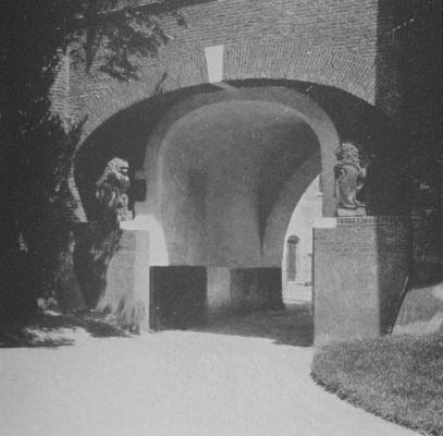 Halfway along is Bronbeek, the royal asylum for invalid soldiers who have served in the colonial wars. It was bought by King William III in 1854 from its private owners, and presented by him to the State five years later on condition that it be devoted to its present purpose. Little cascades trickle here and there through its grounds, while the pair of cannon mounted on its front lawn bespeaks its use as no blaring signboard could possibly do. Not far from the corner entrance to its park stands a statue of William II as Crown Prince, portrayed as carrying his arm in a sling after having received a wound in the battle of Waterloo. The interior of the building contains collections of portraits of East Indian heroes, and of weapons, flags, and other trophies of war taken in the colonies.