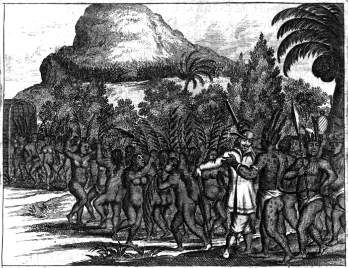 So much have the People of this Island been ever addicted to Sorcerie and Superstition, that notwithstanding the Profession of Christianity, and the frequent Preaching against those Sins, especially since the Reformation, the generality of them are still wedded to many of those old diabolical Customs, which were practis’d there in time of Paganism; and amongst other things they are said to be serv’d, many of them, by Spirits, which constantly attend them, and as Olaus Magnus writes of the Finlanders, they are oftentimes dealt with by Strangers, to sell them prosperous Winds for Money, and (doubtless by the help of the Devil) perform the same; as also on the contrary, they are said by their Enchantments to stop the Course of a Ship, and make it as it were immovable, though in the Stream of never so prosperous a Gale. They are a proud, haughty People, and for the most part endu’d with vast strength of Body; their Habit so promiscuous, that neither Sex can be distinguish’d by it. They are not onely forward to prostitute their Daughters to those Germans that Trade with them at Hafnefords, but that Virgin who hath had to do with a German, shall be sure to be so much the more esteem’d and Courted.