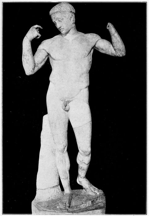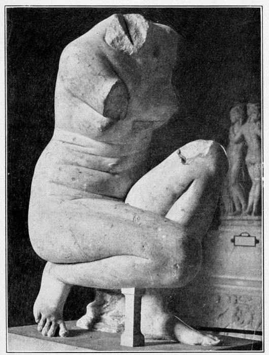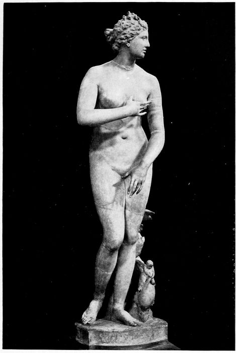“Behold the marvel of marvels! Here you find an exquisite rhythm very like that in the statue 214which we have been admiring; but something of thought as well; for here we no longer find the form of the C; on the contrary, the body of this goddess bends slightly forward as in Christian sculpture. Yet there is nothing restless or tormented here. This work is the expression of the greatest antique inspiration; it is voluptuousness regulated by restraint; it is the joy of life cadenced, moderated by reason.