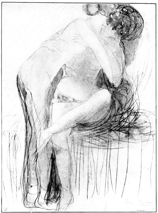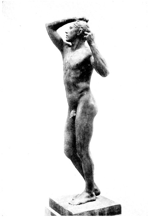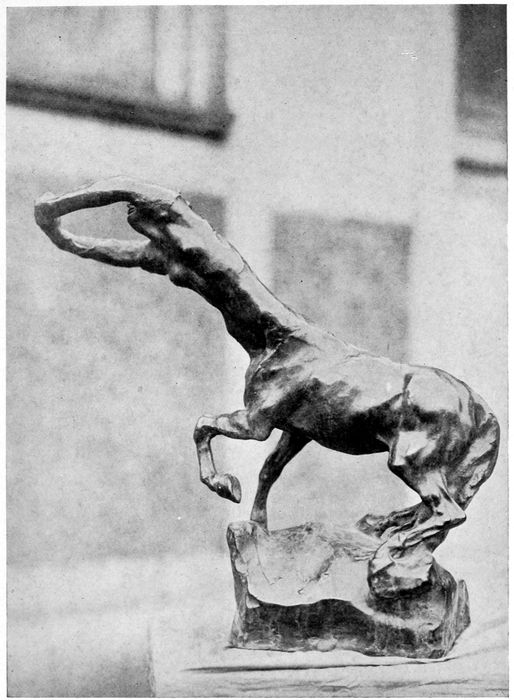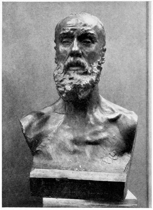 “I pardon you this impertinence,” Bourdelle answered, “because you take half for yourself.” He began gayly, but ended in a momentary crisis of pessimism, as he added: “But I won’t contradict you. It is true that we are good for nothing. When I think of my father, who was a stonecutter, I say to myself, ‘His work was necessary 230to society. He prepared the building materials for men’s houses.’ I can see him now, good old man, conscientiously sawing his blocks of freestone, winter and summer, in the open workshop. His was a rugged type such as we do not see nowadays. But I—but we—what service do we render to our kind? We are jugglers, mountebanks, dreamers, who amuse the people in the market-place. They scarcely deign to take an interest in our efforts. Few people are capable of understanding them. And I do not know whether we really deserve their good-will, for the world could very well get on without us.”