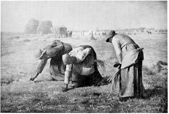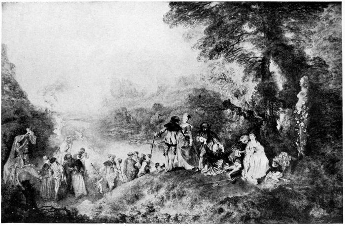 “In order to convince oneself of this, it is enough to observe that most of the masters preceded, and sometimes by a long period, the time when their works won recognition. Poussin painted a number 240of masterpieces under Louis XIII. whose regular nobility foretold the character of the following reign; Watteau, whose nonchalant grace would seem to have presided over all the reign of Louis XV., did not live under that King, but under Louis XIV., and died under the Regent; Chardin and Greuze, who, in celebrating the bourgeois home, would seem to have announced a democratic society, lived under a monarchy; Prudhon, mystical, sweet and weary, claimed, in the midst of strident imperial fanfares, the right to love, to meditate, to dream, and he affirmed it as the forerunner of the romantics. Nearer to us, Courbet and Millet, under the Second Empire, pictured the sorrows and the dignity of the people, who since then, under the Third Republic, have won so preponderant a place in society.