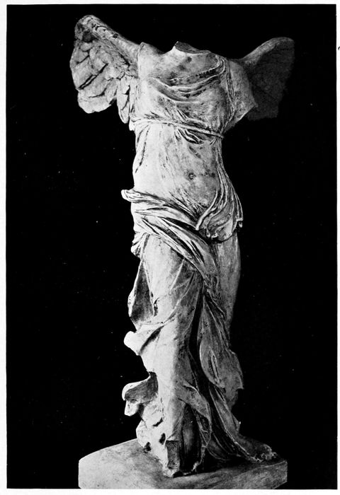 “Place it, in your mind, upon a golden shore, whence, beneath the olive branches, you may see the blue and shining sea cradling its white islands! Antique marbles need the full light of day. In our museums they are deadened by too heavy shadows. The reflection of the sun-bathed earth and of the Mediterranean aureoled them with dazzling splendor. Their Victory—it was their Liberty—how it differs from ours! She did not gather back her robe to leap barriers; she was clothed in fine linen, not in coarse cloth; her marvellous body in its beauty was not formed for daily tasks; her movements, though vigorous, were always harmoniously balanced.