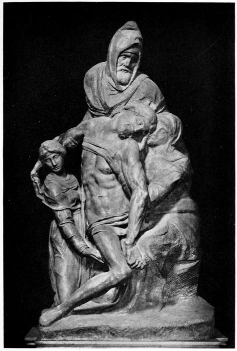 There was silence for a time, then Rodin spoke his thought: “I remember being in the Duomo at Florence and regarding with profound emotion that 222Pietà by Michael Angelo. The masterpiece, which is ordinarily in shadow, was lighted at the moment by a candle in a silver candlestick. And a beautiful child, a chorister, approached the candlestick, which was as tall as himself, drew it towards him, and blew out the light. I could no longer see the marvellous sculpture. And this child appeared to figure to me the genius of Death, which puts an end to life. I have kept that precious picture in my heart.”