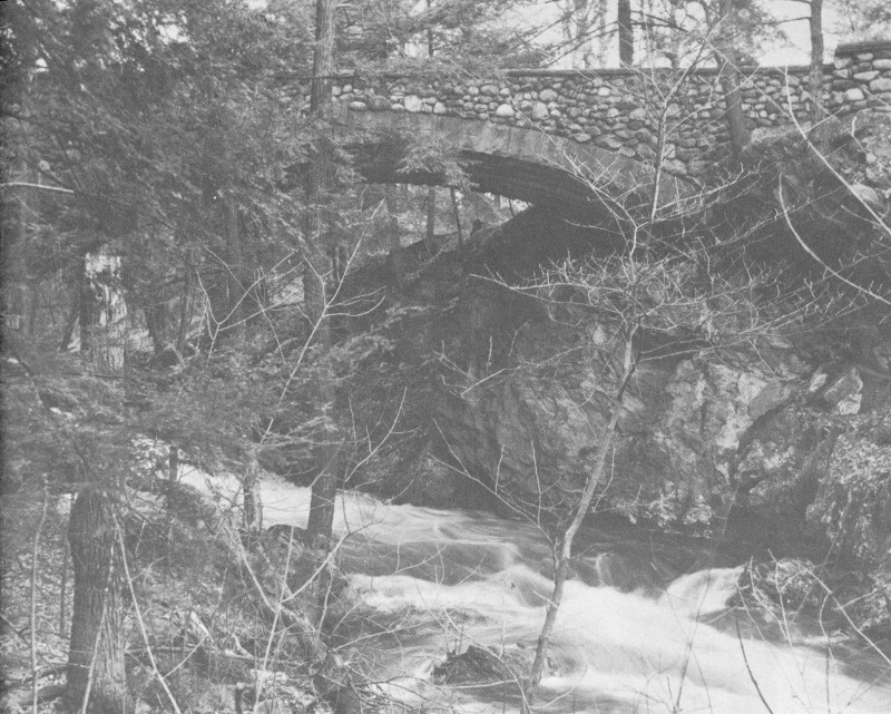 An old frame bridge crossing Crum Elbow Creek to the Post Road was replaced with the present White Bridge, for its time a very modern steel and concrete arch structure. A stable-coach house was built downstream. It was reached by a newly constructed rustic fieldstone bridge across the creek.