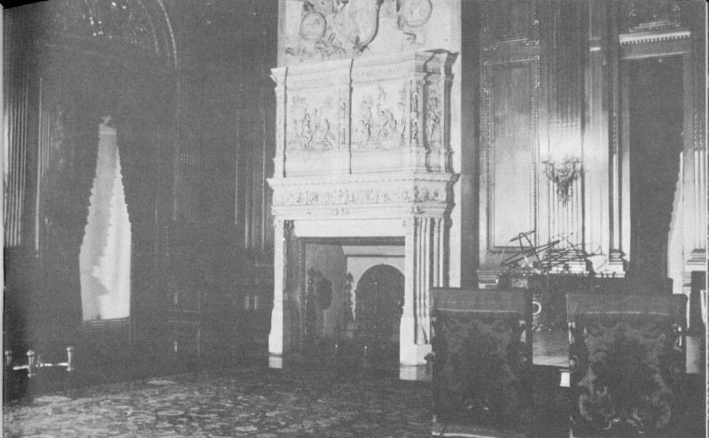 The curious public was barred from the estate during these operations for fear of damage to the exquisite and costly decorations. But speculation concerning the interior of the mansion could not be stopped. One reporter, commenting on the number of skilled workmen and artists who daily tramped into the building, surmised that “... the inside will be as rich and beautiful as the outside is massive and splendid.” Another writer seemed gripped with nostalgia for a simpler day when he wrote: “The modest dwellings which satisfied wealthy landowners along the Hudson half a century ago ... are disappearing. On their sites are rising baronial halls fit for royalty....”