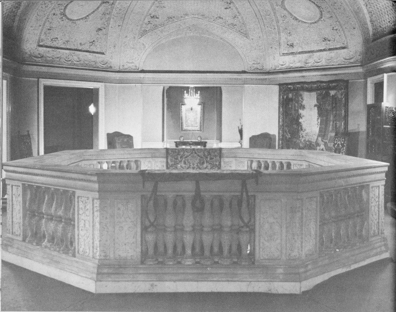 In 1906, architect Whitney Warren installed the balustrade which now overlooks the reception hall.