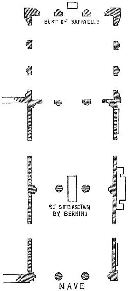 The paintings of the Ala have been taken from a house near the Basilica. The great picture is called Cupid Condemned to Labour. The height of the mountain in the background is very remarkable.