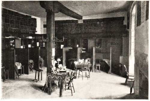 The ship's kitchen is large and cool. There were some sailors cooking, and some were washing clothes. Others were sewing, reading, writing, and talking. Then we went through the petty officers' quarter, which was a kind of long hall, on each side of which were small rooms, and all along this hall sailors were asleep in all kinds of positions. We went to a lower deck in the boat, and our guide showed us where they telegraph to all parts of the ship. There were two rows of boxlike instruments, and in the middle of each was a button. The sailors wore navy-blue blouses and pantaloons and Tam o' Shanters that were trimmed with white braid. The marines' suits were trimmed with gold braid. Instead of Tam o' Shanters they had caps. We went also to see Fort Charles. The moats are three feet deep and five feet broad. They are very thickly overgrown with scrub-oak. We picked up a few shells on the beach as mementos of our trip to the Indiana. I would like a few correspondents.