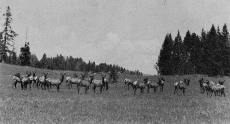 The Jackson Hole country, long famous for its big game, is the home of one of the world’s largest elk herds. The elk, or wapiti, have been the most important big-game animals in Jackson Hole since the occupancy of white men. In the spring they leave the low country of the park and the National Elk Refuge, near the town of Jackson, and move toward the highlands surrounding the valley. When snowfall comes in the high country the elk return to the refuge, which is administered by the Fish and Wildlife Service of the Department of the Interior.
