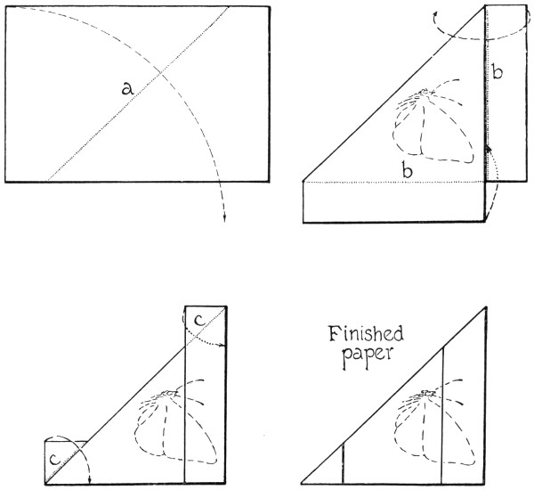 The bag may be attached to the wire loop in either of two ways. The band may be folded over the loop and sewed so that the attachment is permanent; or it may be folded over, sewed, and then slipped on the loop before the latter is fastened to the handle. In the latter case the bag must be open along one seam just below the handle a sufficient distance to allow the band to slip on and around the loop; this vent may be closed with a string lacing after the net is on the loop, and the whole fastened to the handle. A combination of this arrangement with a ferrule binding the loop to the handle is most convenient, for it allows the bag to be removed at will and a lighter or heavier one substituted according to the needs of the collector.