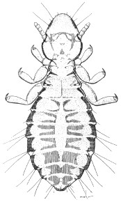 Wingless, blind, flattened insects with short antennae, short legs, inconspicuous mouthparts, and no tails on the posterior end of body. They are found exclusively on the bodies of birds and other warm-blooded animals. The young have the same general shape and habits as the adults and are found with them. Illinois species of lice belong to two distinct suborders, which may be differentiated through use of the following key: