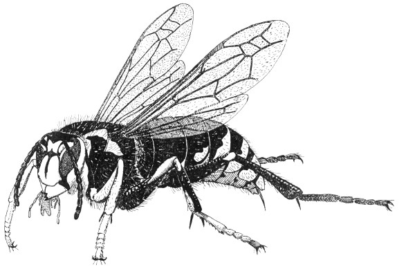 Fig. 56.—Hymenoptera. Vespula maculata, the common bald-faced hornet. Actual length 0.8 inch.