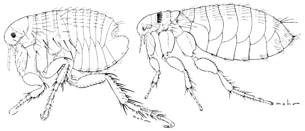 The human flea, Pulex irritants Linnaeus, and a widespread Illinois rat flea, Nosopsyllus fasciatus (Bosc), are shown in fig. 66.