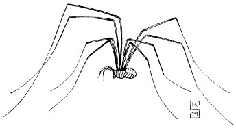 Spider-like forms, each animal with a short, round body and four pairs of walking legs that in most species are very long, fig. 72. They occur chiefly in woods and may be found in numbers walking over foliage and logs; they are often found on bluffs and in shady places. They feed on decaying humus. A few Illinois forms that occur chiefly on bark have considerably shorter legs than the species that range more widely.