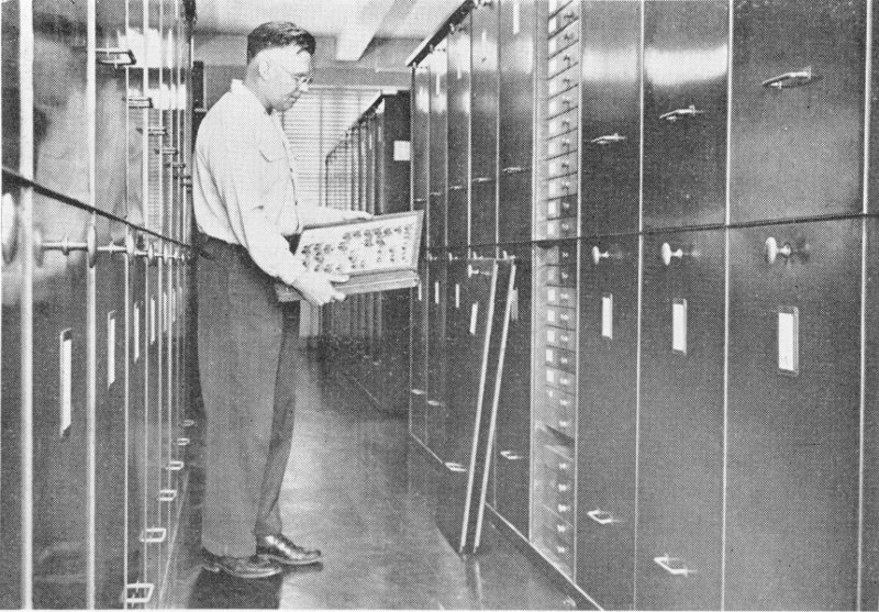 Fig. 79.—A view of the main insect collection room of the Illinois Natural History Survey. In the steel cabinets and hardwood trays shown here are arranged pinned insect specimens. Similar cabinets contain material in liquid preservative. Adjoining this collection room are offices and laboratories of the Section of Faunistic Surveys and Insect Identification, where records of insect distribution and habits are kept on file.