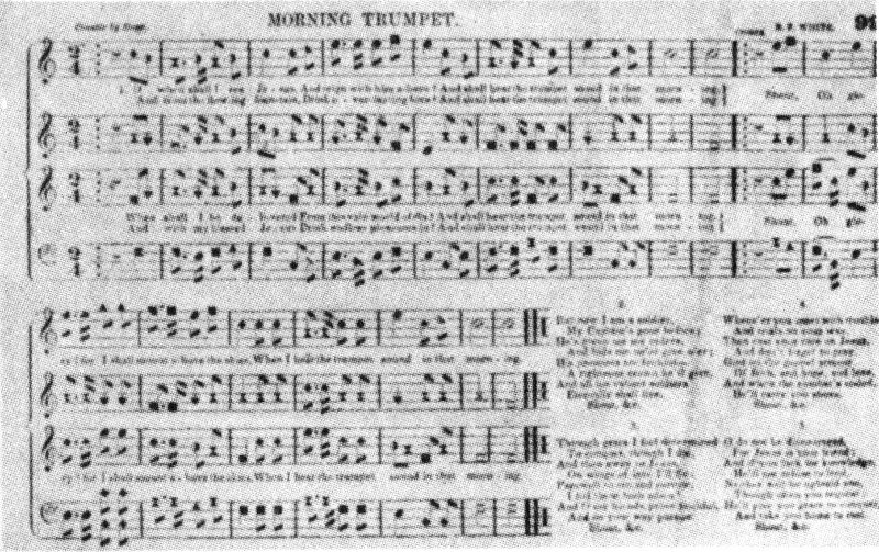 This brings us to the nineteenth century, in which appeared the “shape-note hymnals” from which the material in this volume is chiefly drawn. The existence of these books was scarcely known to musicians and music-lovers until recently, when they were vividly brought to the attention of the musical world by Dr. George Pullen Jackson in his book, White Spirituals in the Southern Uplands. Music lovers were astonished to learn of the existence of these old books, containing a wealth of uniquely beautiful hymn-tunes, largely folk-tunes and others composed in the same idiom. A majority of these are in the old modes and among them are the tunes of folk-songs, ballads, country-dances and even morris-dances. But musicians were even more surprised to learn that there are literally hundreds of thousands of devotees, in homes, in little gatherings and big singing conventions covering a broad region which stretches from the Valley of Virginia to the plains of Texas, who enthusiastically preserve and practise this tradition. That this usage should have lived on from pioneer times into our present day, when not only what we buy but what we are, is stereotyped by the processes of mass production, seems little short of miraculous. But it is explained by the innate vigour of the tradition itself, by the great love of the tradition-bearers for the old tunes and, not least, by the fact that the books embodying the material used shape notes.