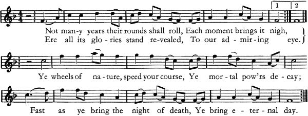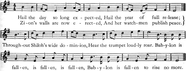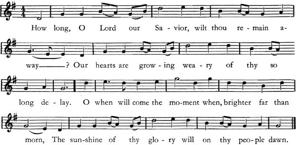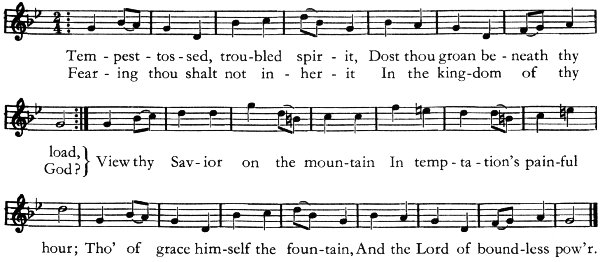 Chappell, in his Popular Music of the Olden Time, says: “We may date the custom of singing hymns to secular tunes from this time [The Norman Conquest] if, indeed, it may not be carried back to the time of St. Aldhelm. William of Malmesbury records of Thomas, Archbishop of York (created in 1070), that ‘whenever he heard any new secular song or ballad sung by the minstrels, he immediately composed parodies on the words to be sung to the same tune.’