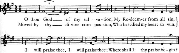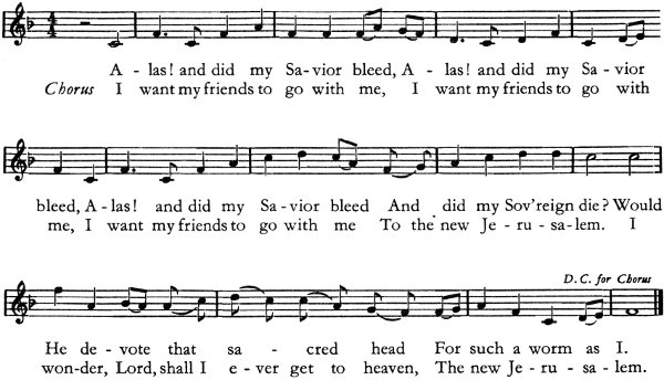 When John Wesley picked up a popular melody here and there on his travels through England and set it to a good hymn text, he little realized that he was setting an example and starting a movement which was to bring into existence hundreds of folk-hymns; that is, songs with old folk-tunes which everybody could sing and with words that spoke from the heart of the devout in the language of the common man.