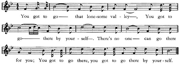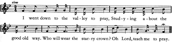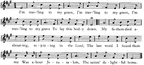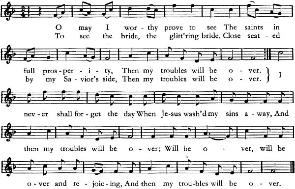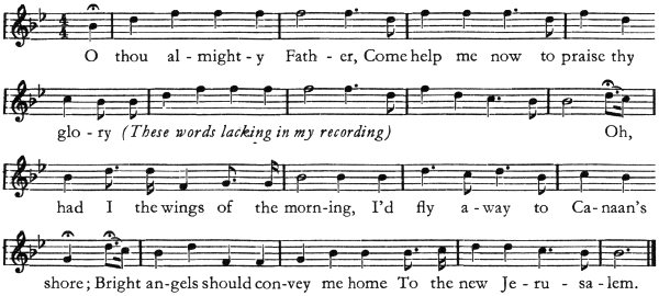 After making these exclusions I centered attention on three mutually rather distinct types of song all of which seemed to be in varying degrees folk products—the religious ballads, hymns, and spiritual songs.