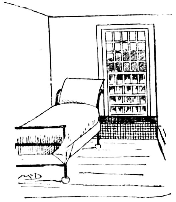 The weather was not cold; but, nevertheless, when I thought of what was to come, wintery chills ran races up and down my back in very mockery of the perspiration which was slowly but surely taking the curl out of my bangs. Between times, practicing before the mirror and picturing my future as a lunatic, I read snatches of improbable and impossible ghost stories, so that when the dawn came to chase away the night, I felt that I was in a fit mood for my mission, yet hungry enough to feel keenly that I wanted my breakfast. Slowly and sadly I took my morning bath and quietly bade farewell to a few of the most precious articles known to modern civilization. Tenderly I put my tooth-brush aside, and, when taking a final rub of the soap, I murmured, “It may be for days, and it may be—for longer.” Then I donned the old clothing I had selected for the occasion. I was in the mood to look at everything through very serious glasses. It’s just as well to take a last “fond look,” I mused, for who could tell but that the strain of playing crazy, and being shut up with a crowd of mad people, might turn my own brain, and I would never get back. But not once did I think of shirking my mission. 10Calmly, outwardly at least, I went out to my crazy business.