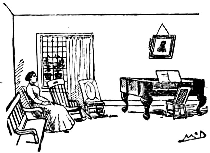 I followed these not overkind or polite instructions and found myself in a dark, uncomfortable back-parlor. There I awaited the arrival of my hostess. I had been seated some twenty minutes at the least, when a slender woman, clad in a plain, dark dress entered and, stopping before me, ejaculated inquiringly, “Well?”