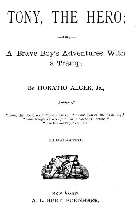 TONY, THE HERO; or, A Brave Boy's Adventures with a Tramp. By Horatio Alger, Jr.