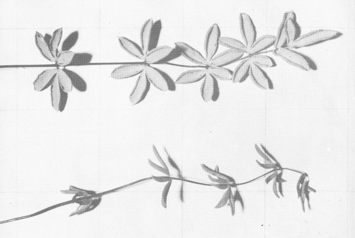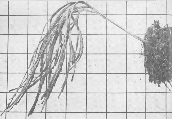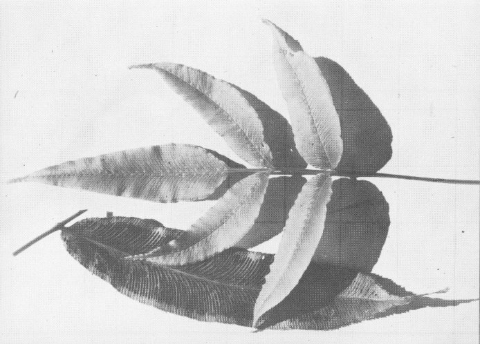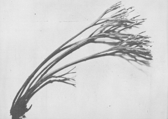 The Psilotum is a primitive plant, of which two species are found in the Hawaiian Islands. One is the MOA, which usually grows on the ground and has stems which fork many times near the ends. The second, the PIPI, often grows upon the trunks of trees and ferns. This species normally grows perpendicular to the trunk, then curves abruptly earthward like the tail of a horse. Degener (2, p. 18) states that the MOA was used by the Hawaiians in making a medicine for treatment of a fungus disease, as an emetic, and that the spores were used as a powder to relieve chafing from the malo, or loincloth.