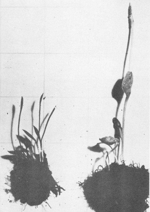 Sharp-eyed observers may find in cracks near Halemaumau and along the Chain of Craters Road the adder’s tongue, a small, delicate plant with a “head” which resembles a pointed tongue. Fowler (4) found the LAUKAHI growing on trees near Keanakakoi and Makaopuhi craters. Hawaiians are said to have prepared a cough remedy from the LAUKAHI. Near the 6,000 foot level on the slopes of Haleakala may be found a species of Ophioglossum according to Hillebrand (5).