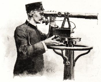Nor will it do to fire at an enemy in the old hit-or-miss style that used to be followed. In the old days the gunner sighted the gun, made an allowance as best he could for the distance the ship would go before he fired, and when the roll or plunge of his own vessel was favorable he pulled a string, as he turned away his head, and took chances of hitting the other ship. He had to guess the distance largely. He first tried a certain range, and then another, until he gradually got the right distance, and then he fired, whenever he got the right chance. Those were the days of the old smooth-bore cannon; the days when a captain could make himself heard by a speaking-trumpet anywhere on deck, and almost anywhere below-deck by shouting down a hatchway. All that is changed now. The roar on a war-ship in battle is like that on a mountain-top encased in a violent thunder-storm. Then, too, ammunition is too costly and too limited nowadays to be wasted by experiments in finding the range of the enemy, and in taking chances on hitting him. One shot from one of these guns of modern times may win the battle by piercing the vitals of the enemy's ship, and not even the smallest chance must be taken to miss that target. It is for that reason that the wonderful aid of electricity has been called into use on war-ships in many devices. Probably the most wonderful of all these devices is the range-finder.
