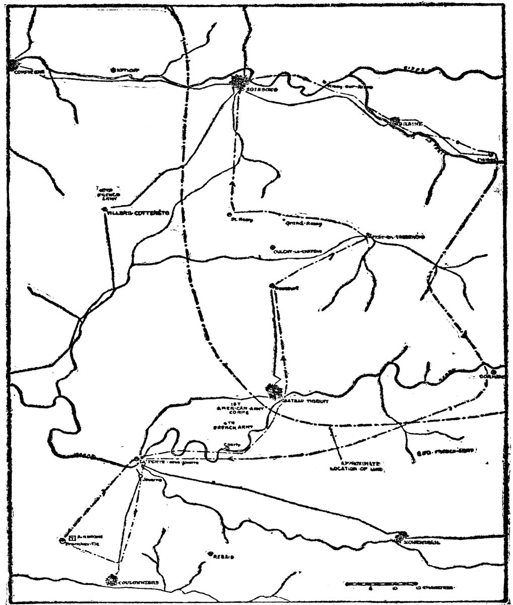 Realizing the uniqueness of our position, which happens only once in a couple of centuries, namely, being a member of the victorious army about to pass from the hands of the enemy, I sought to engage Herr Kapp in honest, frank conversation, since there could now be no reason for deceptions. After a while, he opened up, so I asked him when he considered the German cause was at its best. He said that it was undoubtedly in the early part of the War, when the Germans were at the gates of Paris. 283I asked him when he thought the tide had turned, and he said that the German people realized, on July 18, 1918, when the Allies attacked between Château-Thierry and Soissons, that thereafter Germany was fighting the War on the defensive.