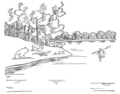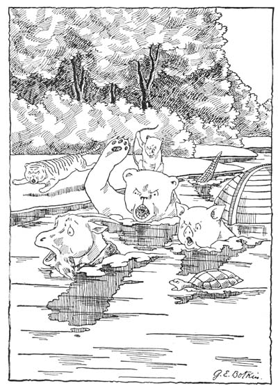 All the Beasts were waiting for him on the shore. He came up, whisking his paddle this way and that way through the water, just to show how well he could do it.