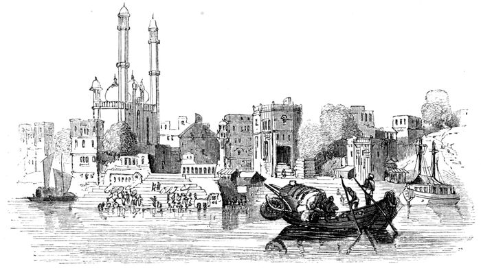 We have now given as many views of Benares as it is possible to introduce within the limits of our Diorama, and we take leave of the holy city with regret. The Vedas and Shastrs all testify that “Viswaswara is the first of Devas, Kashī (Benares) the first of cities, Gangā the first of rivers, and charity the first of virtues.” Vishveshvur, “Lord of the Universe,” is one of the most exalted titles of Siva.