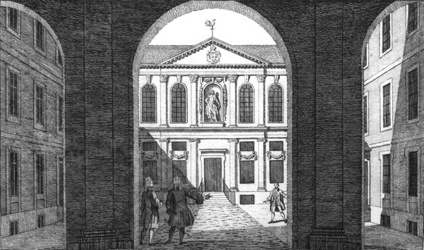 Morden College, on the east side of Blackheath, for the support of poor decayed and honest merchants, was erected by Sir John Morden, Bart. a Turky merchant, several years before his death, which happened in the year 1708. It consists of a large brick building, with two small wings, strengthened at the corners with stone rustic. The principal entrance, which is in the center, is decorated with Doric columns, festoons, and a pediment on the top, over which rises a turret, with a dial; and from the dome, which is supported by scrolls, rises a ball and fane. To this entrance there is an ascent by a flight of circular steps; and having ascended them, and passed through this part of the building, we enter an inner square, surrounded with piazzas. The chapel is neatly wainscoted, and has a costly altar-piece.