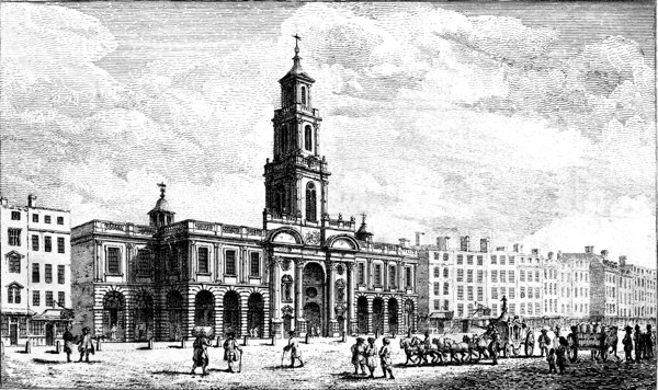 Shoreditch church, at the north end of Shoreditch. See the article St. Leonard Shoreditch.