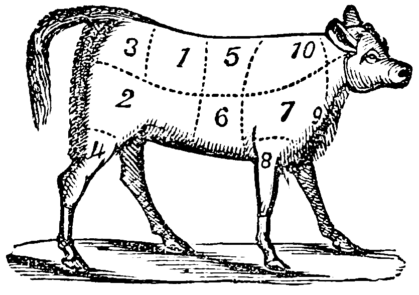 FIGURES EXPLANATORY OF THE PIECES INTO WHICH THE FIVE LARGE ANIMALS ARE DIVIDED BY THE BUTCHERS.