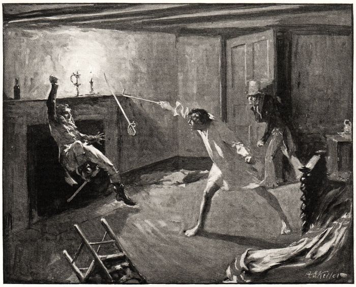 "Good-night, father dear," exclaimed the lad, flinging a kiss at the shadow his father's candle flung on the wall. Then he turned again into his own room, where Aaron the Arab (son of Ben Ali) sat leaning against the wall, as silent and as impassive as a block of tawny marble.