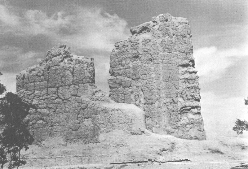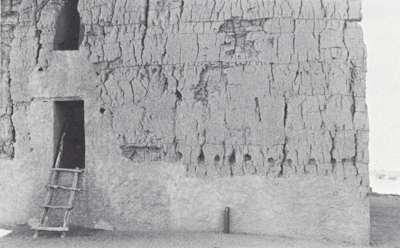 The walls of the Casa Grande are heavy and massive, ranging in thickness from 4½ to 1¾ feet. To save work and to reduce weight on the foundation, the Indians narrowed the walls as they built them up. 7 The outside surface bows inward as the wall rises. The inside surface, however, is nearly vertical. (See photo).