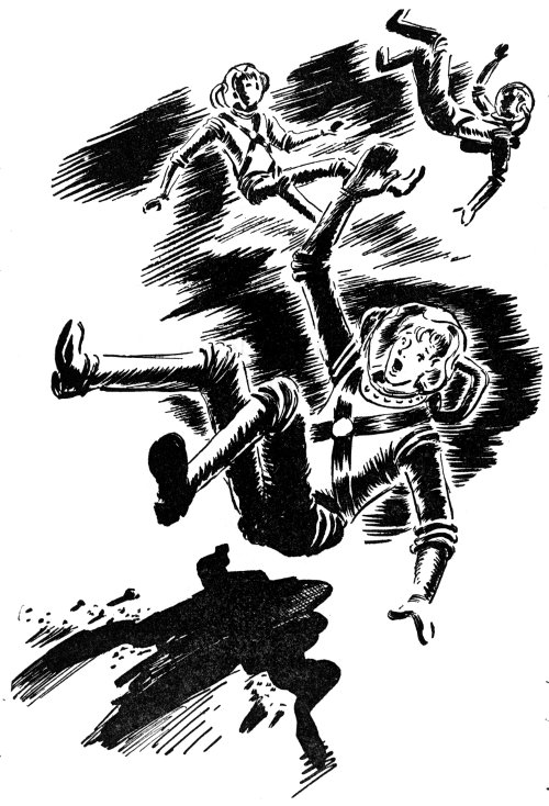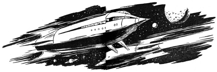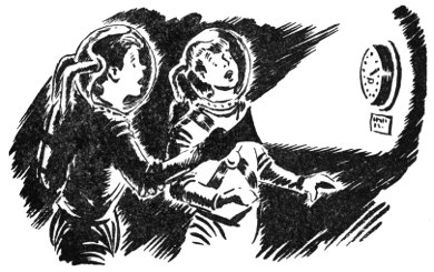 Ted straightened his sturdy young shoulders and shook strands of brown hair out of his eyes. It was natural that girls should be scared of things connected with space travel, he thought. “Thousands of miles an hour isn’t much,” he said lightly.