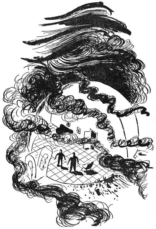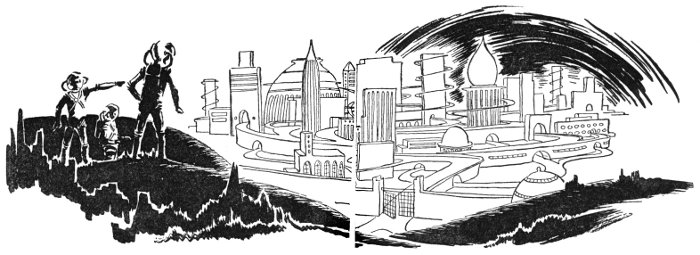 Ted, Jill, and Randy knew the answer now, as did every other colonist on the red planet. The paintings on the wall of the shrine had revealed the baffling riddle. It was simply and clearly portrayed in pictures, just as though the Martians had expected someone someday to know their story. The revelation was that hundreds of years ago all Martians had left their world in large space ships because of Mars’s disappearing oxygen. Apparently there still existed somewhere the remains of a supercivilization which had built these space craft.