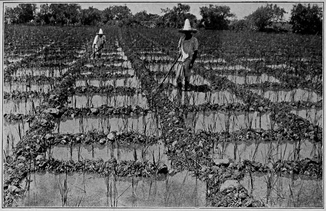 The opening of this section of the canal has worked wonders in the development of this part of the coast land, because it places the products of the plantations and ranches within easy reach of the markets. It has also served to drain thousands of acres of land, which were formerly considered to be of no use whatever. On this route the canal passes through Lake Tamiahua, which is seventy-nine miles long and from five to twenty miles wide. Lake Tampamachoco, a much smaller lake, will also be traversed by this canal. The water in these lakes is comparatively shallow, and it has been necessary to deepen them considerably in order to[474] make the canal of uniform depth with the other portion. The distance between Tampico and the mouth of the Rio Grande is about three hundred miles, but a number of salt water lagoons, which lie near the coast, can be utilized as a portion of the canal. If this project, and the similar one planned by the United States, are completed, it will furnish a very long inland waterway for the coast region. It will serve the double purpose of draining and making more healthful that portion of the country, and likewise giving an outlet for the development that will surely follow. The land when once drained has been proved to be of unusual fertility.
