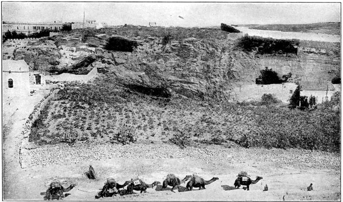 But it was not to this church of the Holy Sepulchre with its wonderful shrines, its most sacred associations reaching back into the long past, filled with memories of devout men and women, rich and great, poor and lowly, young and strong, weak and old, who had reverently worshiped before the rent in the rock, the place where the soldiers parted His garments, the tomb in the solid stone down in the very bowels of the earth, worn smooth as glass by the feet of pilgrims who, like Peter and John, must stoop to enter it, and Golgotha, reached by winding steps cut in the rock and leading up almost to the roof of the church—it was not this place which we sought as we came from the garden of Gethsemane, following Him along the Sorrowful Way. It was out on the hills beyond the Damascus Gate to the spot called Gordon’s Calvary that we went, not because 107we cared to enter into all the reasons why many believe it to be the place of suffering, rather than the other, but because out there on the wind-swept rocks under a darkening sky, with a garden in the little valley and the tombs cut in solid rock, their “great stones” lying near—out there with no priest and no altars it was easier to read the words of the Book and try to understand them.