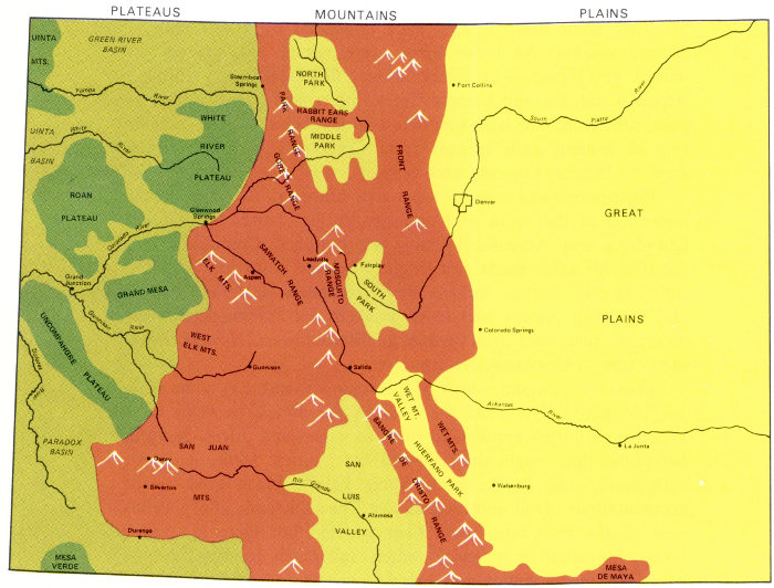 Topographically, scenically, and geologically, Colorado can be divided into the three provinces shown here.