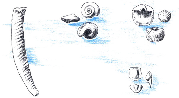 Belemnite. The cigar-shaped internal shell of an extinct marine mollusk similar to a squid.