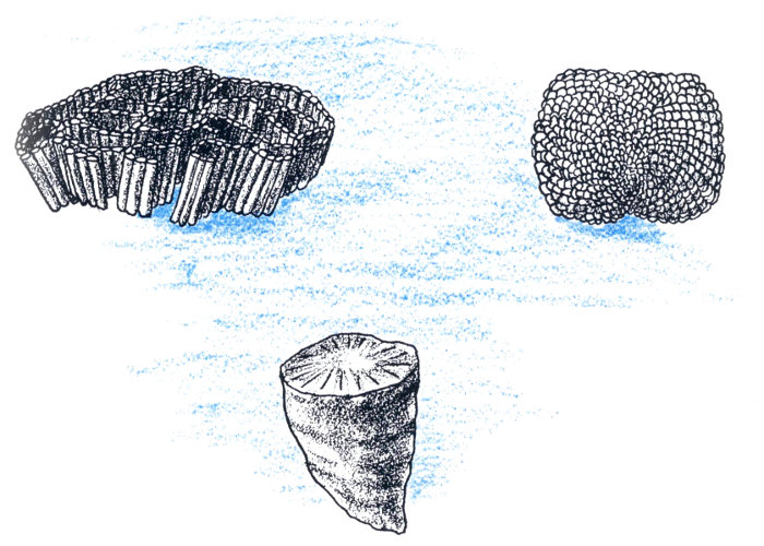Bryozoa. A large group of tiny colonial marine animals that secrete calcareous or horny coverings in a great variety of shapes.